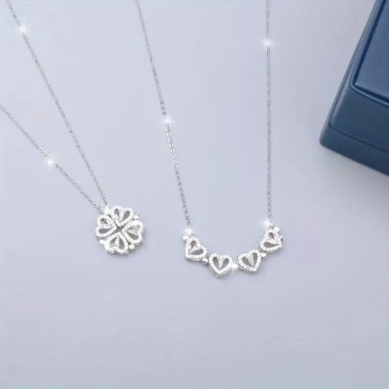 1 pieza, collar de moda para mujer, colgante de corazón abierto de cinc planteado, colgante de circonita sintética, collar de acero inoxidable de bajo alergeno, adecuado para regalos diarios.
