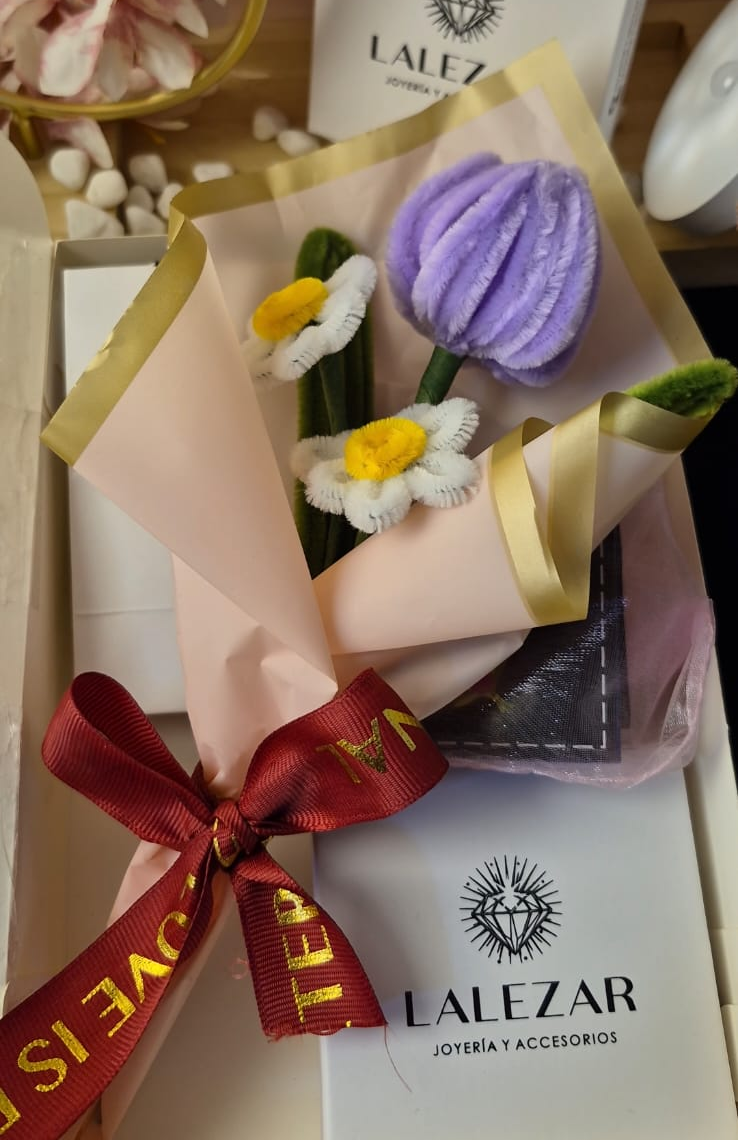 SET TULIPAN PLUS : COLLAR + PULSERA + ARETES + FLOR ETERNA + LIBRITO POEMA